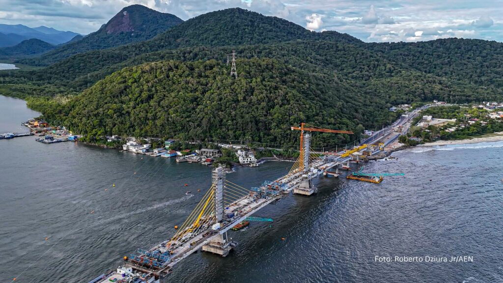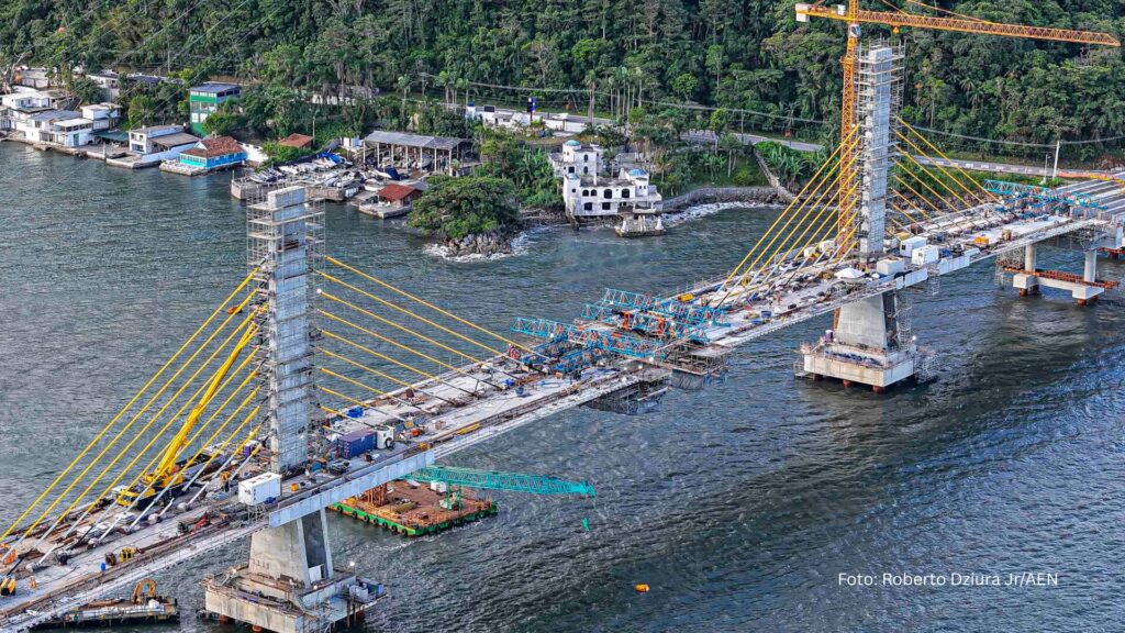 FALTA POUCO – A construção da Ponte de Guaratuba chegou ao fim de 2025 com um índice de execução de 88%, já em sua reta final e com previsão de entrega para o mês de abril. A obra avançou em todas as frentes de trabalho, com destaque para a finalização completa da infraestrutura e progressos expressivos no trecho estaiado, que já é um cartão-postal da região antes mesmo de ser finalizado.