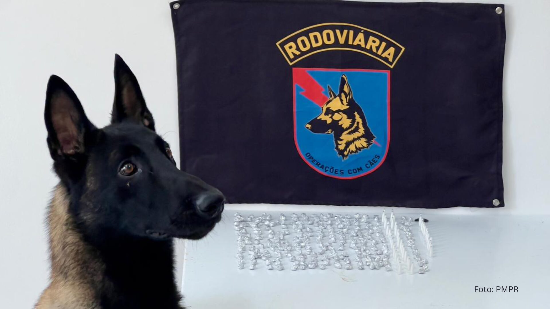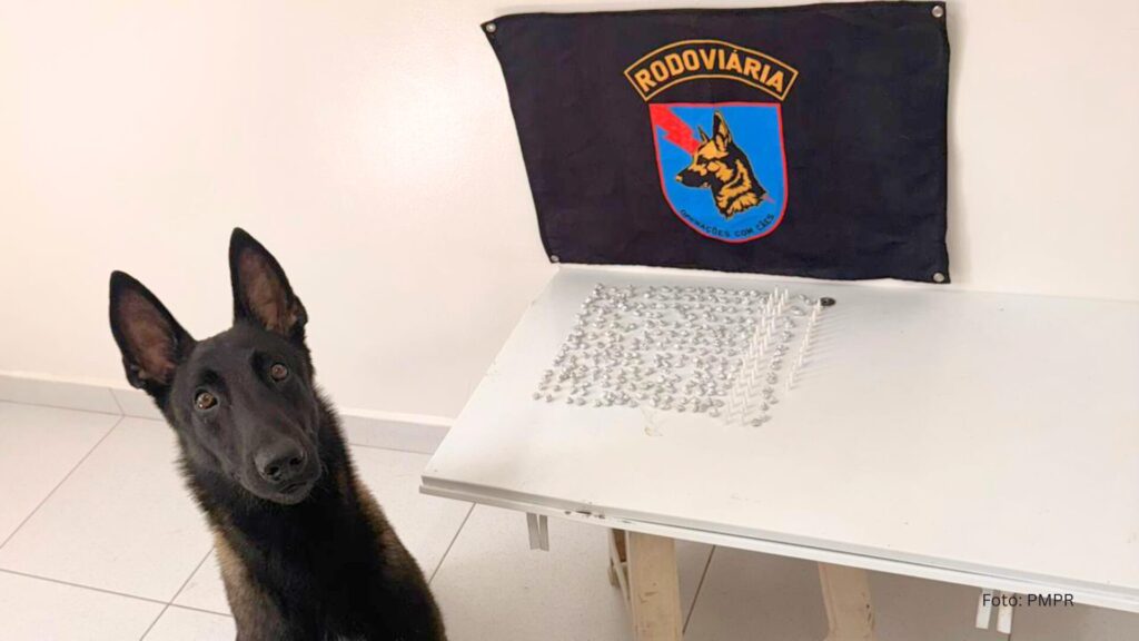O cão Urco foi então empregado para vasculhar o local por onde o indivíduo tentou fugir e farejou uma grande quantidade de entorpecentes no alto de um muro. “O cão para nós é o verdadeiro amigo do homem, ele atua de forma direta na constatação de onde estão os entorpecentes, para nós, principalmente em rodovias e áreas próximas a rodovias”, afirma o capitão Sidinei Hudach, do BPRv.