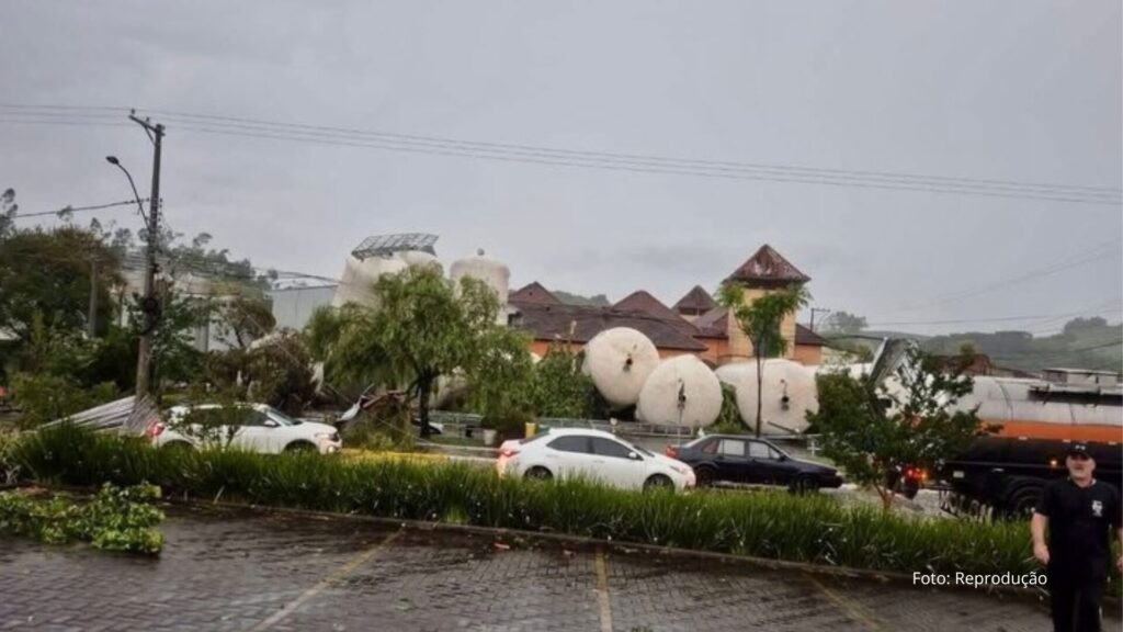 Segundo o Inmet, a previsão é de tempestade hoje, 8, até amanhã, 9, em áreas de PR, SC e RS. O volume total de chuva pode chegar a mais de 100 milímetros em um período de 24h, com ventos superiores a 100 km/h e queda de granizo.
