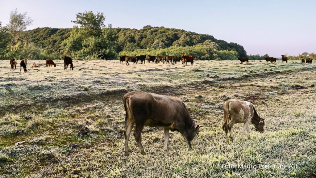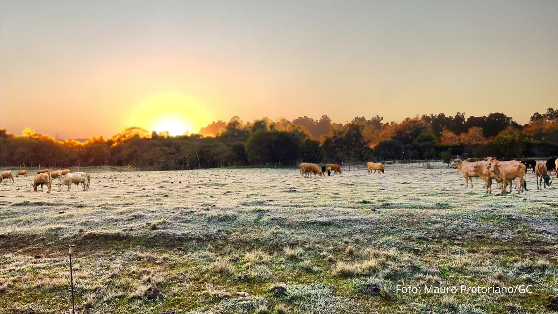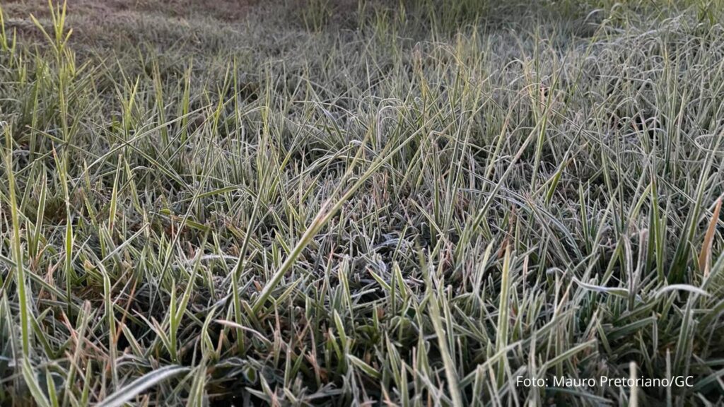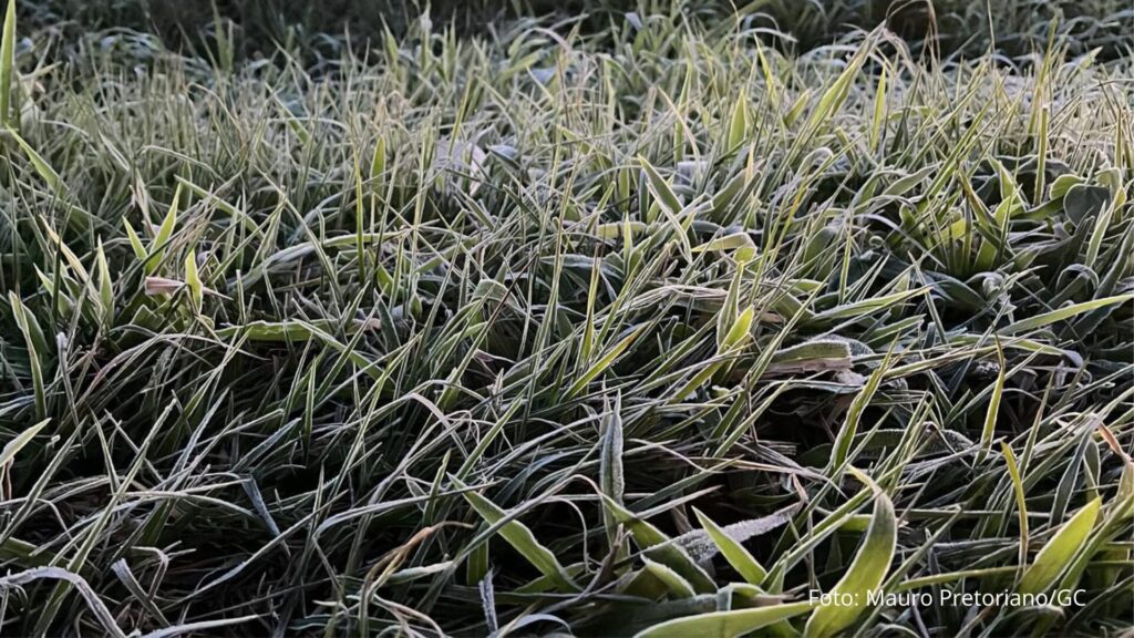 Já, na área da lavoura de milho, a geada também foi forte, no entanto, por conta do estágio em que se encontra a planta, o fenômeno não causou prejuízos.
