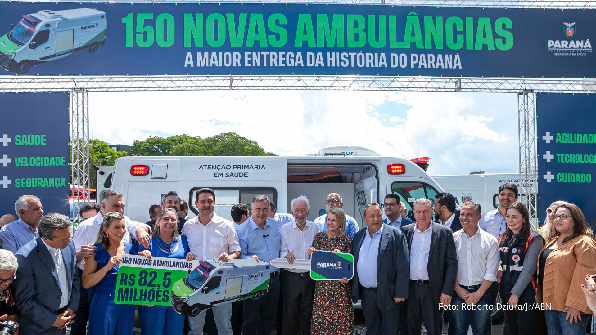 O Governo do Paraná entregou nesta quarta-feira, 3, um novo reforço para a estrutura de urgência e emergência em todas as regiões do Estado: 150 ambulâncias equipadas como UTIs móveis, adquiridas com investimento de R$ 82,5 milhões da Secretaria de Estado da Saúde (Sesa). A cerimônia conduzida pelo governador Carlos Massa Ratinho Junior marcou o início da distribuição da nova frota, que vai ampliar a capacidade de resposta dos municípios e modernizar os serviços pré-hospitalares.
