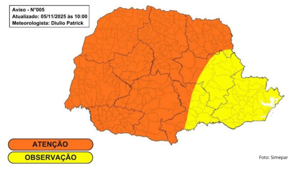 Granizo e ventania: temporais previstos para sexta devem atingir grande parte do Paraná
