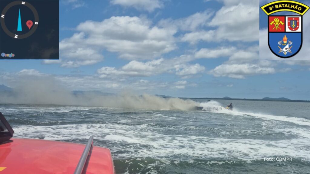 Incêndio em lancha mobiliza bombeiros em Paranaguá (Vídeos)