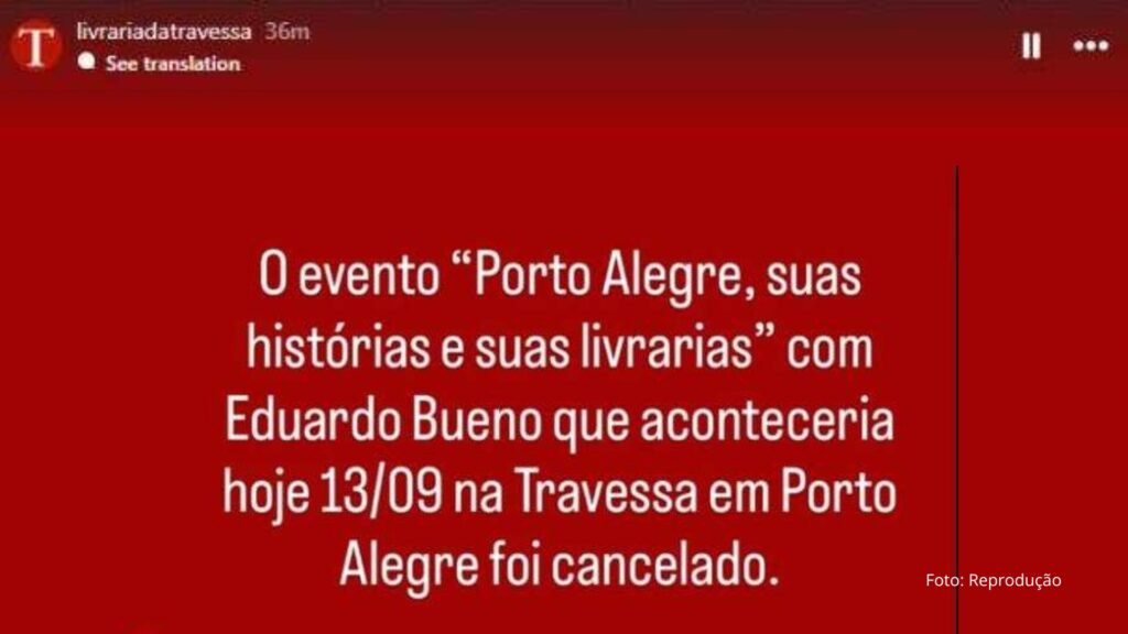 O motivo do cancelamento não foi divulgado pela tal livraria, no entanto, especula-se que tenha sido por conta da repercussão negativa ocorrida em razão dos atos implícitos de ódio proferidos pelo ‘gaúcho’, que comemorou de forma doentia, raivosa e covarde a morte de Charlie Kirk, inclusive debochando das filhas de Kirk, agora órfãs.