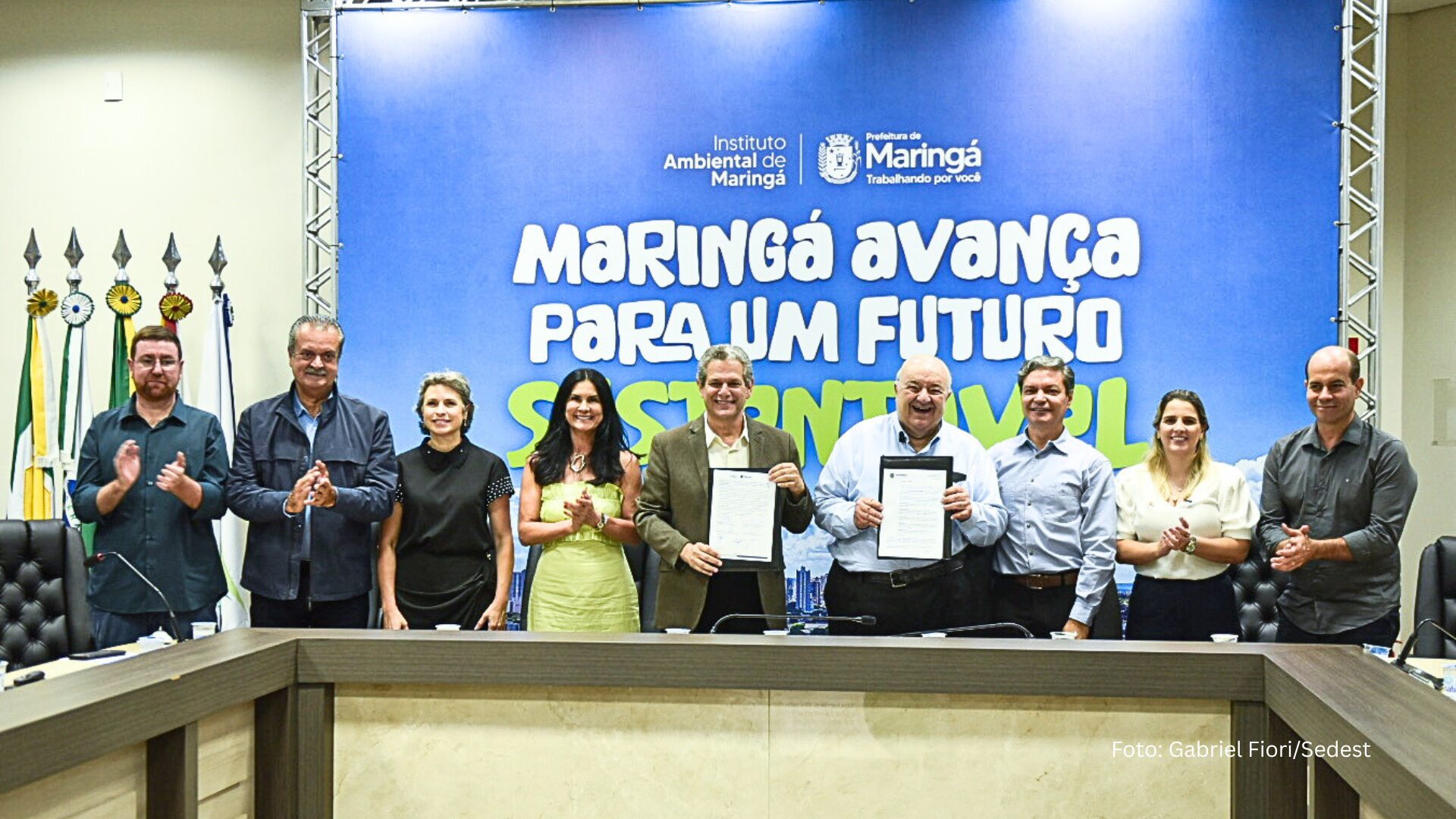 A cerimônia de lançamento dos projetos ocorreu na Associação Comercial e Empresarial de Maringá (Acim) e contou com a presença do secretário de Estado do Desenvolvimento Sustentável, Rafael Greca; do diretor-presidente do Instituto Água e Terra (IAT), Everton Souza; e do prefeito Silvio Barros, entre outras autoridades.