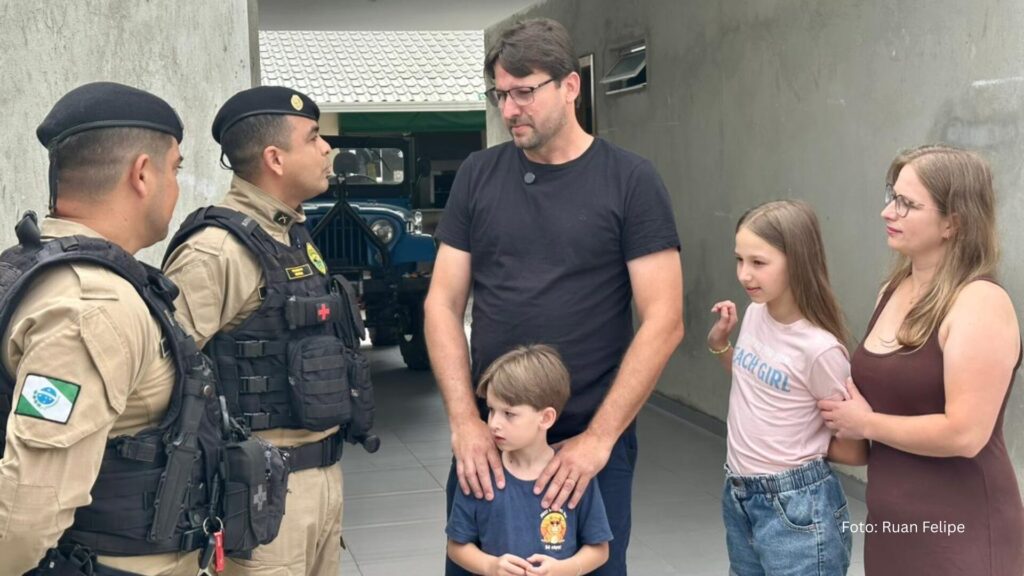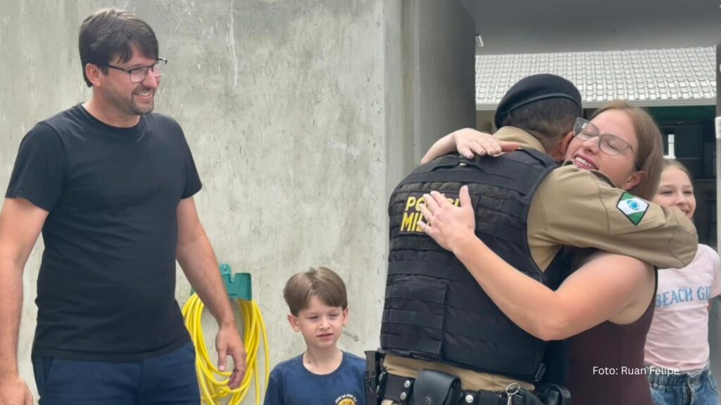 “É uma emoção muito grande ver eles nos abraçando e transmitindo toda essa alegria que sentem hoje, após um susto tão grande”, afirmou o soldado Gouveia durante a visita à residência da família.