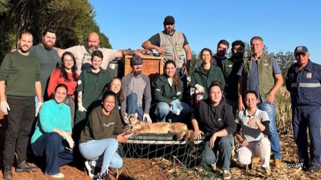 Onça-parda fêmea é resgatada em árvore e devolvida à natureza no Oeste do Paraná