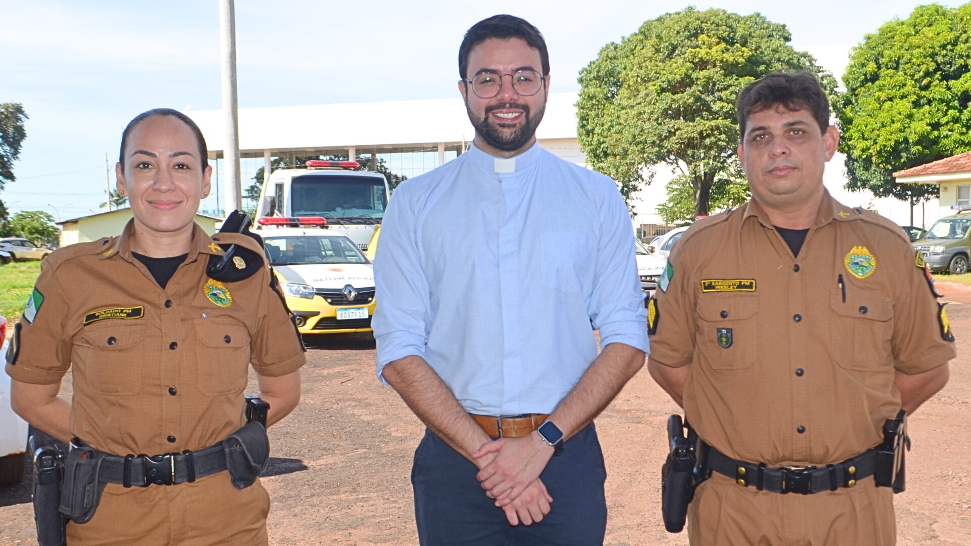 O Padre Leonardo Castro, da Paróquia São Francisco de Assis, visitou na manhã desta quarta-feira, 10, o 31º Batalhão de Polícia Militar (BPM), com sede em Assis Chateaubriand. Na ocasião, o carismático Sacerdote foi recebido de forma bastante cordial pelo sgt. Wesley e a sd. Cristiane da PMPR.