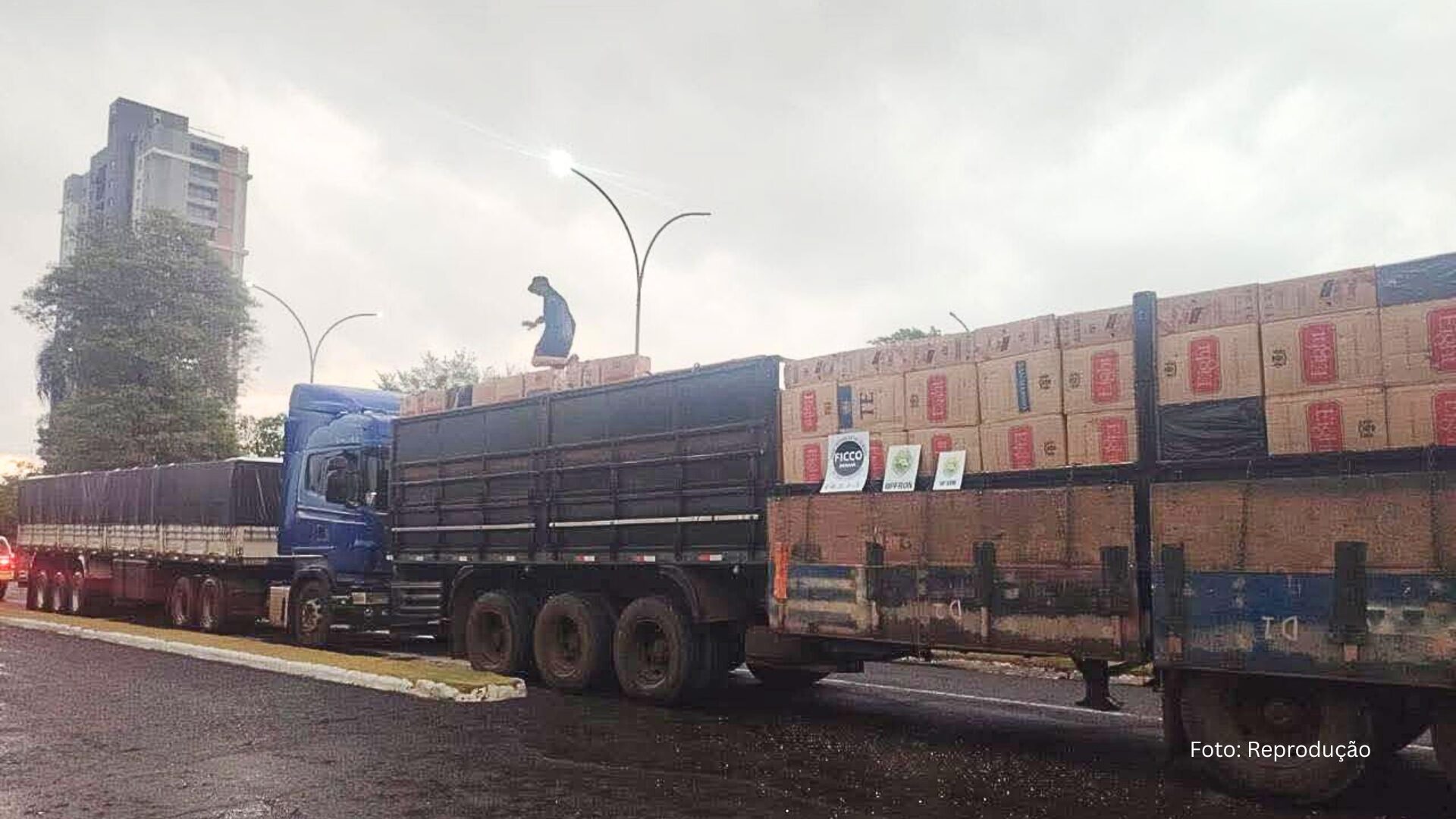Informações do serviço de inteligência indicavam que um caminhão de origem paraguaia estaria transportando mercadorias ilícitas, sendo precedido por outro veículo que atuaria como ‘batedor’. Integrantes de diversas forças de segurança realizaram um cerco estratégico na BR-277 e identificaram duas carretas, uma branca e a outra azul, trafegando juntas.