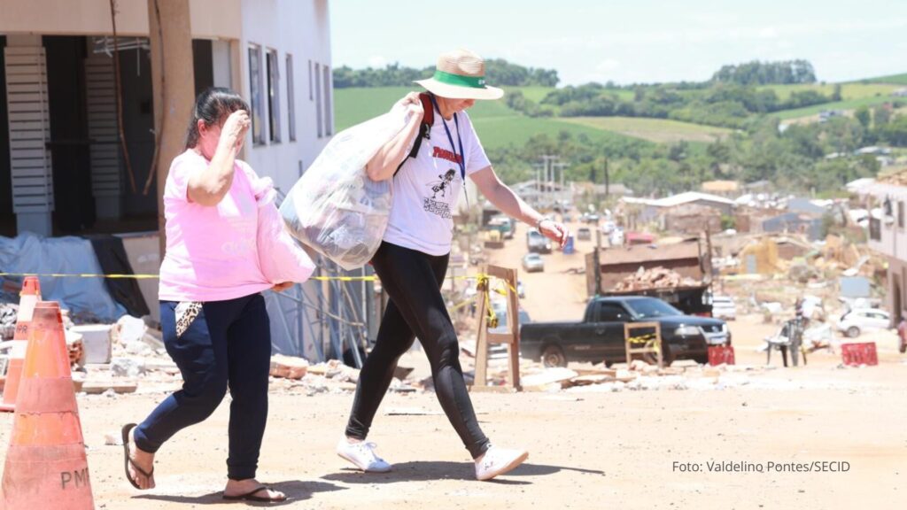RECONSTRUÇÃO E SOLIDARIEDADE – Desde o fim de semana, o Governo do Estado mantém equipes da Defesa Civil, Polícia Militar e Secretaria do Desenvolvimento Social e Família no município de Rio Bonito do Iguaçu. As ações incluem apoio logístico, limpeza de vias, distribuição de kits de assistência humanitária, colchões, cobertores e telhas, além do acompanhamento psicossocial das famílias atingidas.