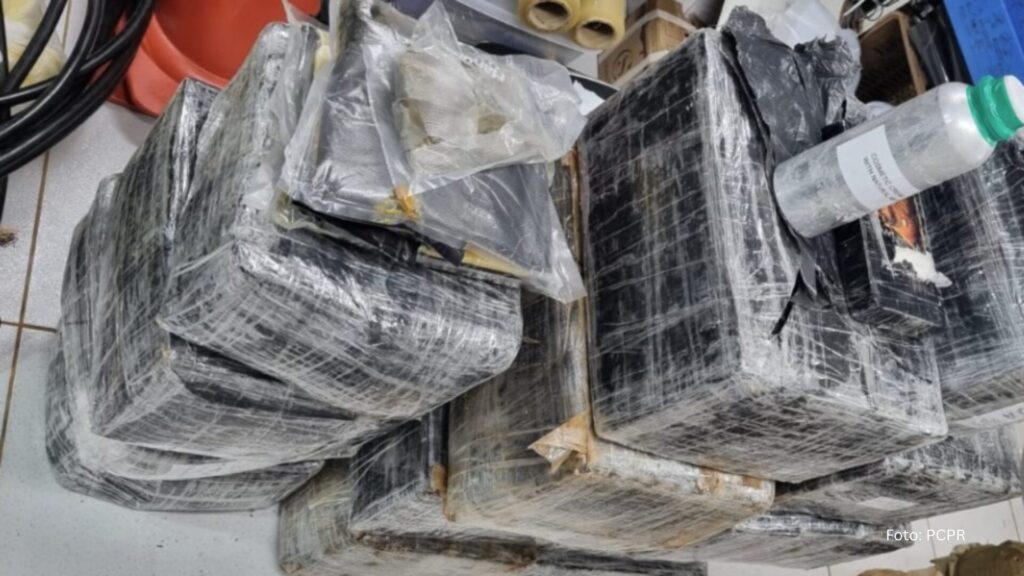 “Na vistoria, foram localizados 288,5 quilos de cocaína e 83,6 quilos de haxixe escondidos sob fardos de arroz. Também foram apreendidos dois aparelhos celulares e valores em espécie”, explica.