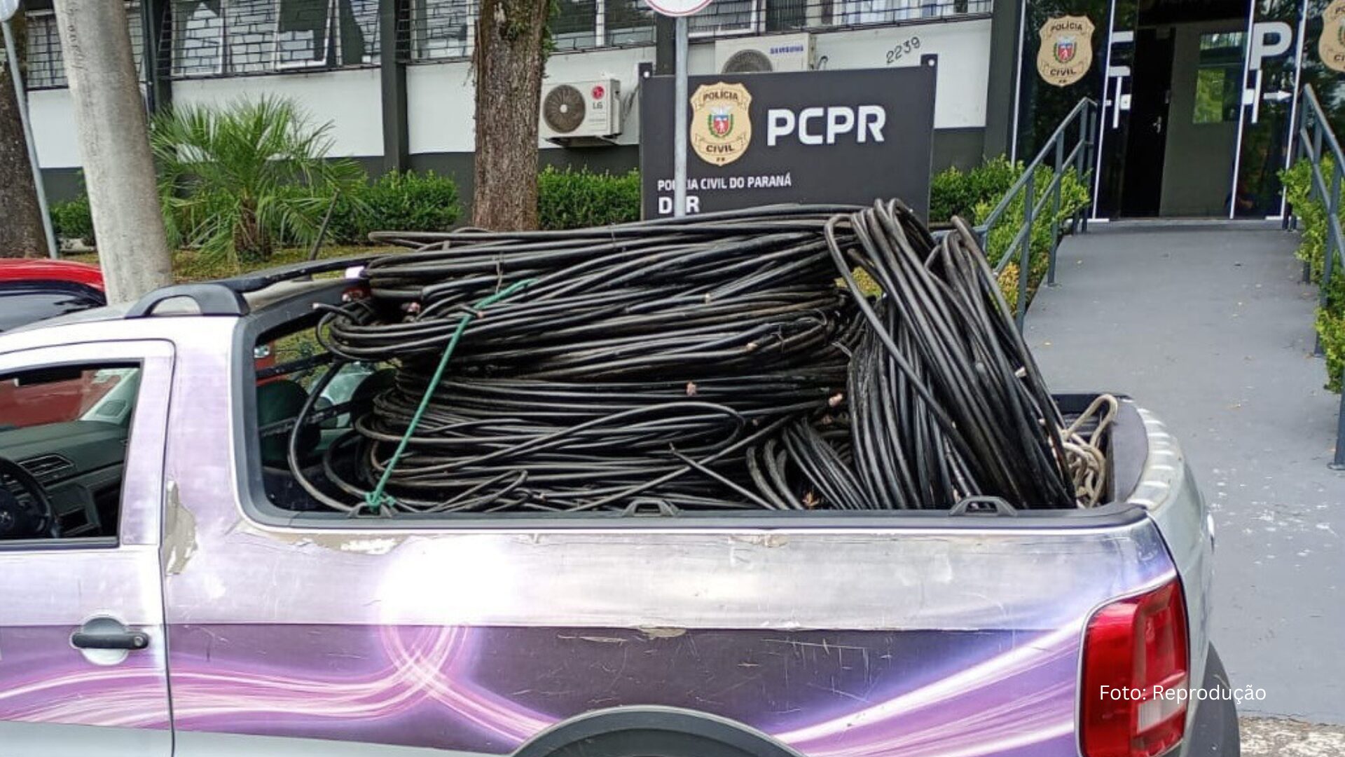 A Polícia Civil do Paraná (PCPR) prendeu um homem, de 50 anos, em flagrante pelo crime de receptação. A prisão aconteceu nesta sexta-feira (23), no bairro Novo Mundo, em Curitiba, quando os policiais localizaram uma tonelada de cabos de telefonia sem procedência.