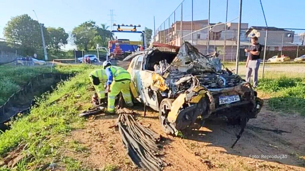 No ponto onde a via está em obras, não há pista aberta para circulação. A viatura acabou “rampando” e caindo em um barranco, capotando diversas vezes. Na viatura estavam dois policiais militares.