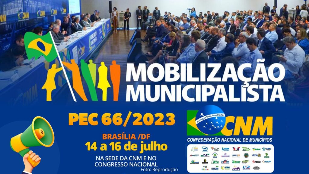 14/07 – 15h – Concentração na sede da CNM – 15/07 – 8h – Comissão Especial da PEC 66/2023 – Câmara dos Deputados. Tarde – Plenário da Câmara dos Deputados (a depender da pauta do Congresso) – 16/07 – Possibilidade de votação da PEC se não ocorrer na terça-feira e a definir de acordo com a votação em Plenário.