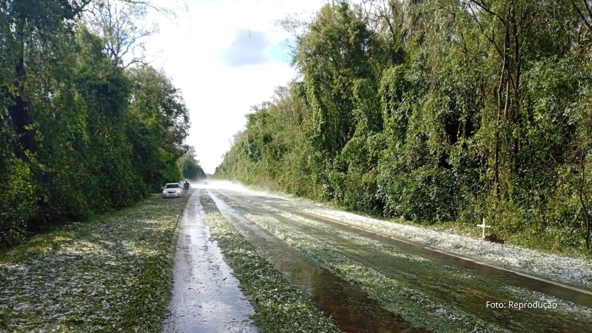 Imagens registradas por um caminhoneiro mostram a BR-386 tomada por granizo. Durante a tempestade, o trânsito no trecho afetado seguiu de forma mais lenta na região do trevo de Barra Funda.