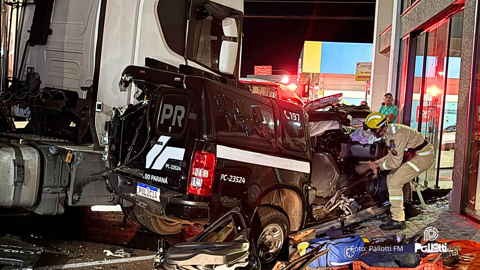 Segundo o site Notícias Coronel, a viatura da PCPR de Chopinzinho (Sudoeste do Estado) colidiu com a carreta Scania pertencente a uma empresa da cidade de Verê (Sudoeste do Paraná) e, por conta do impacto, o veículo policial foi arrastado por vários metros e acabou prensado contra o meio-fio, em frente a um prédio comercial que teve uma das portas de vidro quebrada.